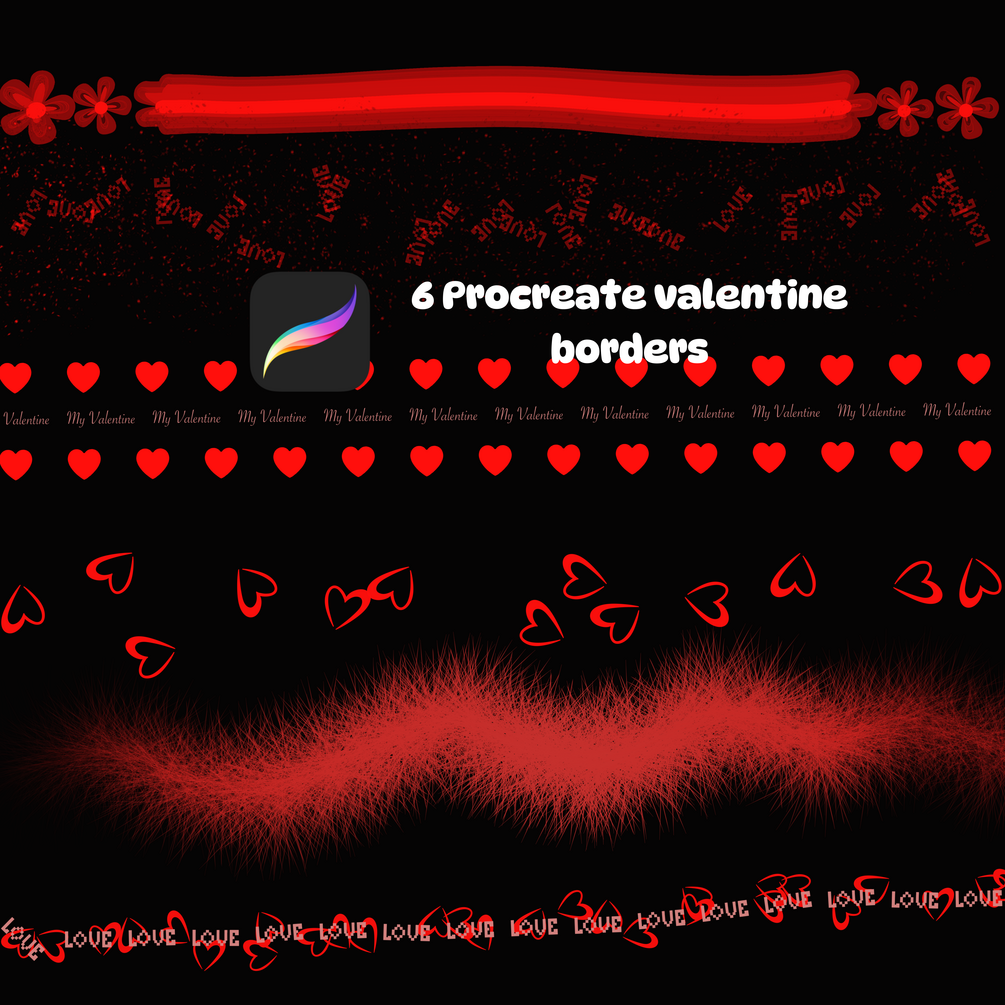 30 Procreate Valentine Brush Pack – Seamless Patterns, Borders & Stamps
